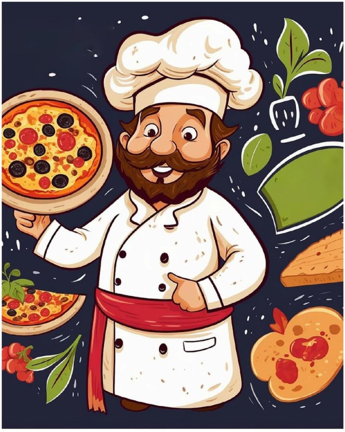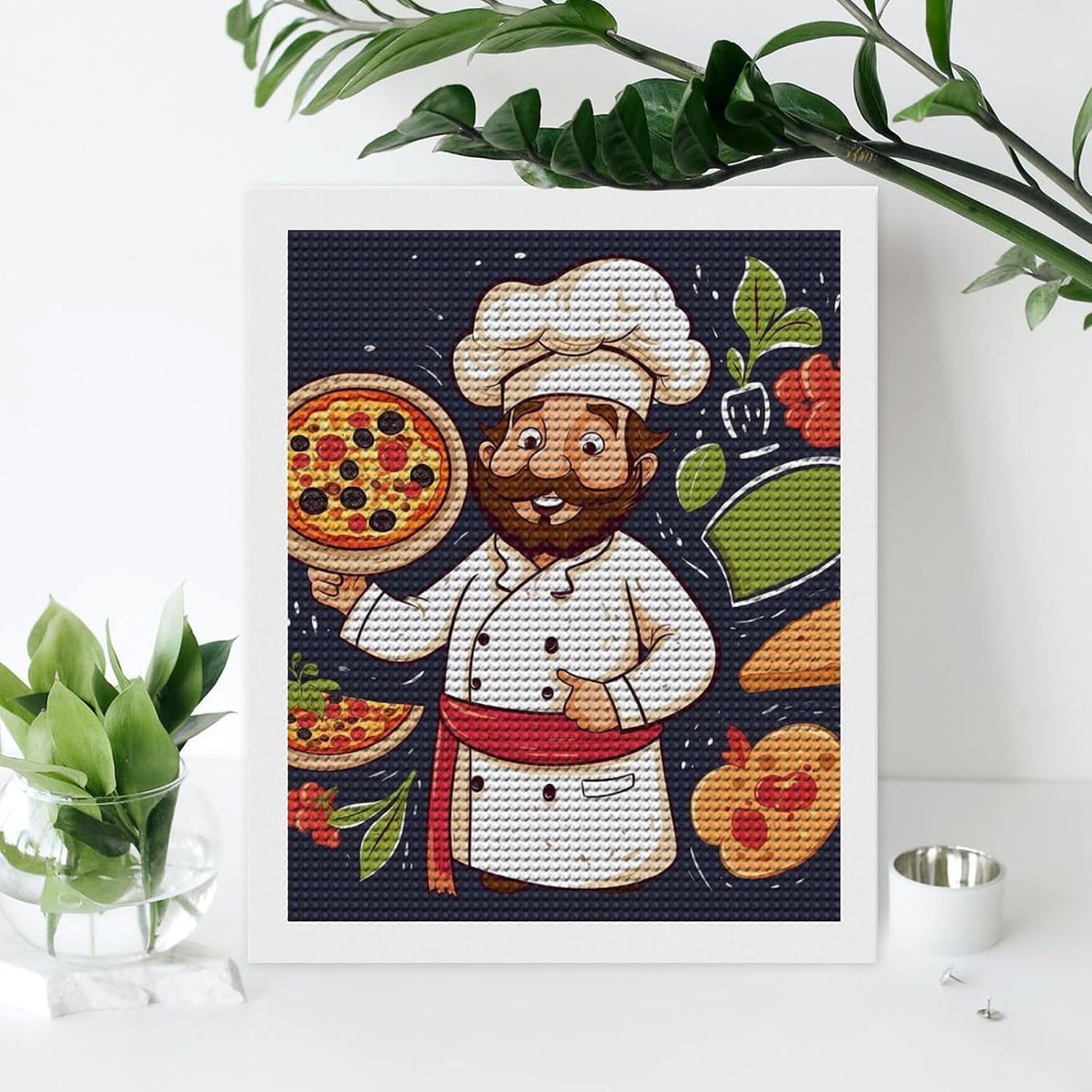 Chef Pizza Wall Painting Diamond Painting Kits for Adults - DIY Diamond Art Kits for Adults, Diamond Dots 5D Paint with Diamonds Pictures Gem Art Kits Crafts Kits for Adults for Home Wall Decor Gem Art for Adults DIY Diamond Art Kits Picture Arts Craft for Home Pictures Arts Wall Decor Painting Dots KitsDIY Diamond Painting kits- DIY diamond painting is the new popular products.- It is beautiful what you see in the picture, very shining and amazing.- Production process is simple that you can spend less time to complete.- Simply hung it onto the wall, it will make your room and your world amazing. - It is exquisite to give to friends and loved ones to express good wishes to share.Package Including:-1*High definition painting canvas.-Colorful round diamonds.-1*Point diamond pen.-1*diamond tray.-1*painting mud. SpecificationDiamond Part: Full Drill Round Diamond Painting Paint by Number kitsHow to use:1.Open the bag and check the diamond draw special tools.2.Refer to the table below the canvas to find the corresponding magic cube diamond.3.Apply a proper amount of diamond adhesive to the pen.4.Stick the corresponding diamond.5.Stick the diamond onto the corresponding canvas.6.The rest of the diamonds can be put inside the packaging bag.7.Use your hand to press the diamonds to ensure it's more stout.